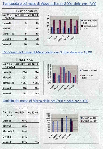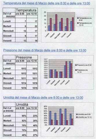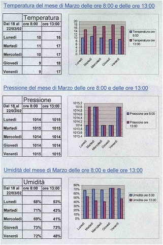 Ecco alcune rappresentazioni dei dati da noi rilevati a vista e tramite l'uso degli strumenti in capannina